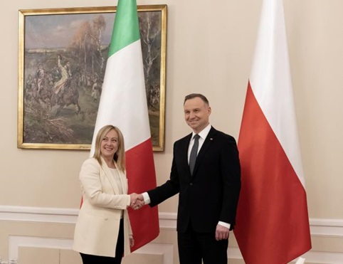 Il Presidente del Consiglio, Giorgia Meloni, ha visitato Varsavia dove ha tenuto delle dichiarazioni insieme al Primo Ministro polacco, Mateusz Morawiecki. In serata, si è svolto un incontro tra il Presidente Meloni e il suo omologo polacco, Andrzej Duda.